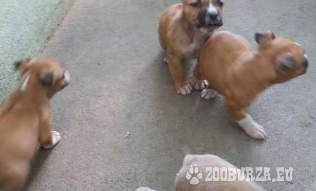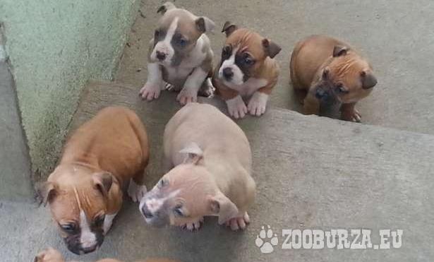 Leírás: Amerikai staffordshire terrier kiskutyák eladók 5 hetesek 3 szuka és 4 kan Féregtelenítve oltás nélkül. Kérésre küldök további képeket.