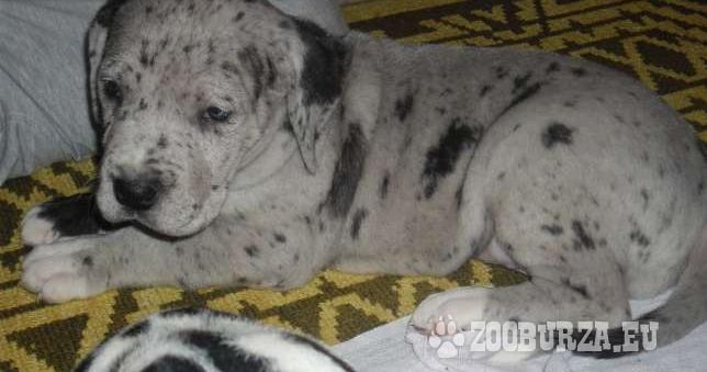 Leírás: Német dog kölykök eladók.A foltos, szuka. A világosabb foltos, kan A szürke, szuka.A kölykök hat hetesek lesznek.A foltos kölykök negyvenezerbe kerülnek.